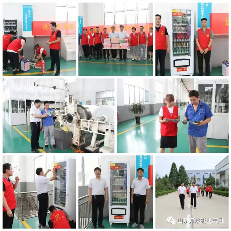 入夏以来,县总工会把职工劳动保护和防暑降温工作作为“我为职工办实事”的一项具体行动,认真制定“夏送清凉”方案,广泛开展“送清凉、送安全、送健康、办实事”活动。14日下午,县总工会志愿服务队顶着烈日,冒着酷暑,来到集团龙德公司滤纸车间,带着县总工会领导关爱职工的深情厚谊,向集团赠送了一台自动售货机,并在滤纸车间就地安放,在车间建立起了“24小时营业的微型超市”,让职工足不出户、随时随地就能享受到方便快捷的及时购物。同时为坚守在生产一线上的职工送上饮品、方便面、矿泉水、火腿肠等清凉物资,并向车间职工发放安全生产及防溺水知识宣传手册,提高职工本人及家庭成员安全保护意识,受到了公司车间职工们的一致好评。