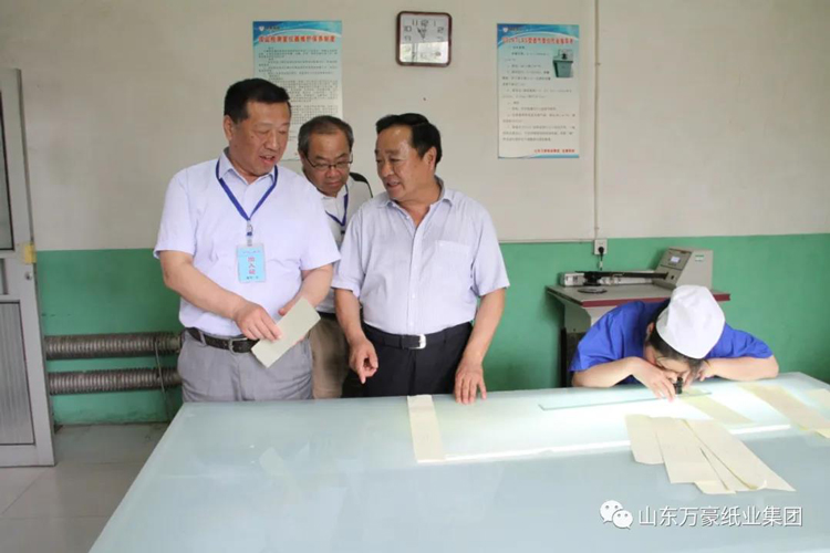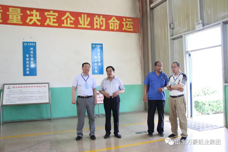 山东省造纸行业协会开展潍坊市造纸行业生产运营情况调研。7月8日上午,协会会长赵振东、秘书长高兴杰莅临集团,同集团董事长尹培农进行了交流座谈并参观龙德滤纸生产线。尹培农向赵振东会长介绍了企业生产运行、设备装备水平、市场分布状况等情况,并陪同参观。